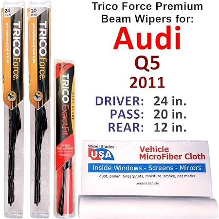 Amazon Com Premium Beam Wipers For 2011 Audi Q5 Set W Rear Trico Force Beam Blades Wipers Set Bundled With Microfiber Interior Car Cloth Automotive